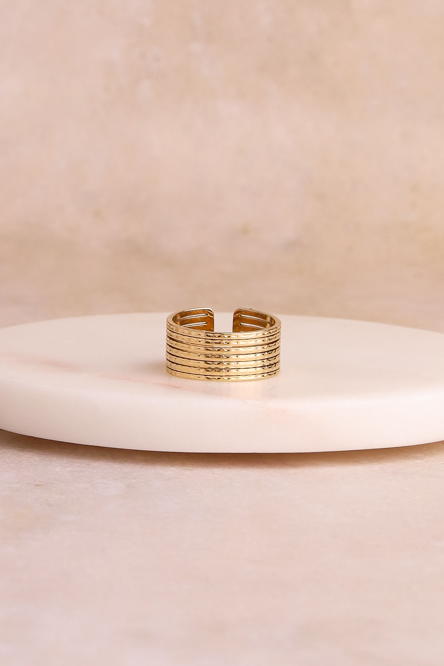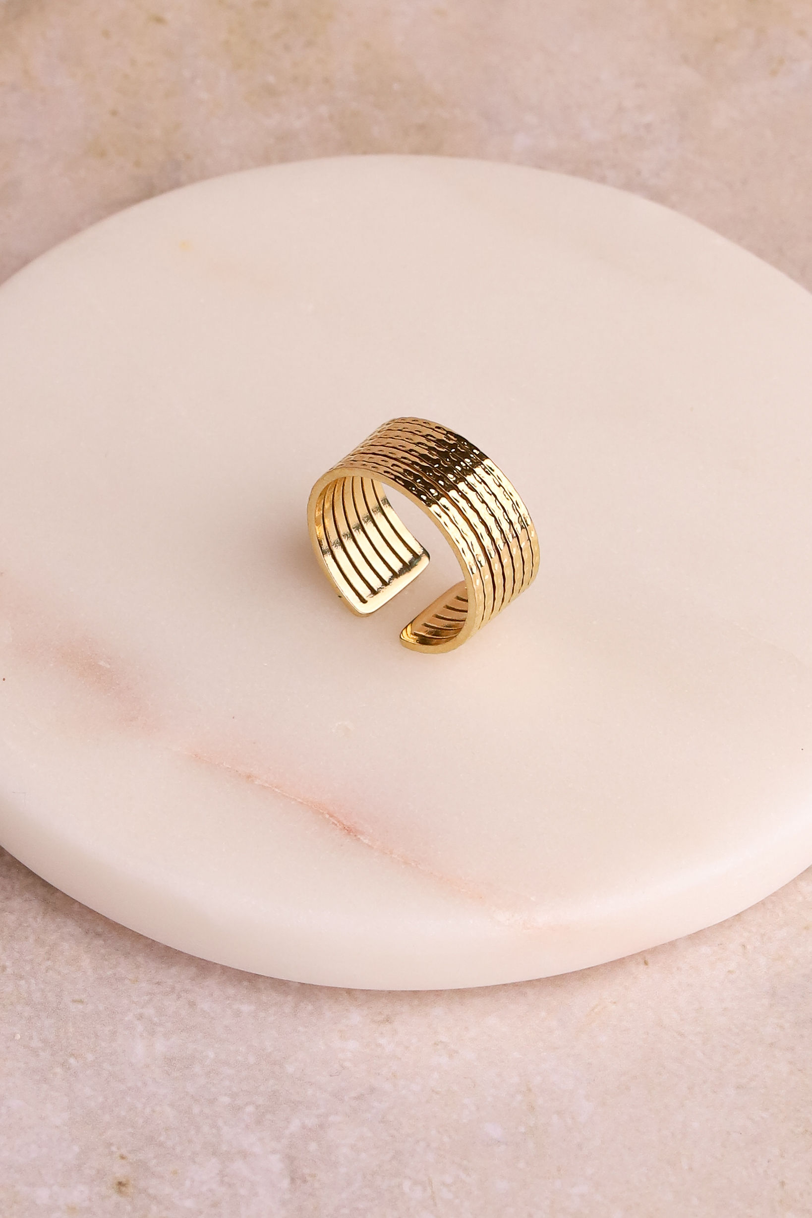Bague ligne effet martelée en acier inoxydable.