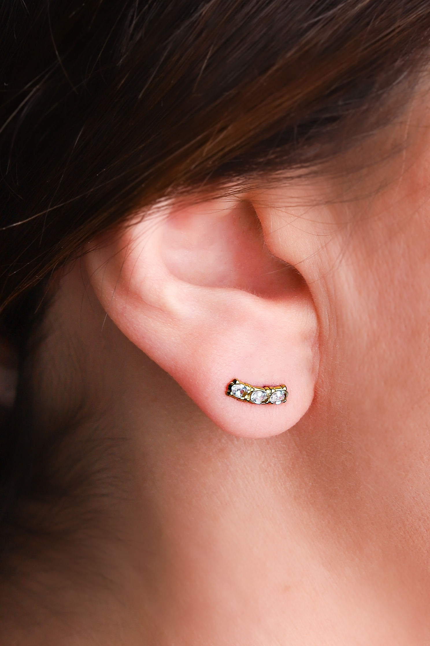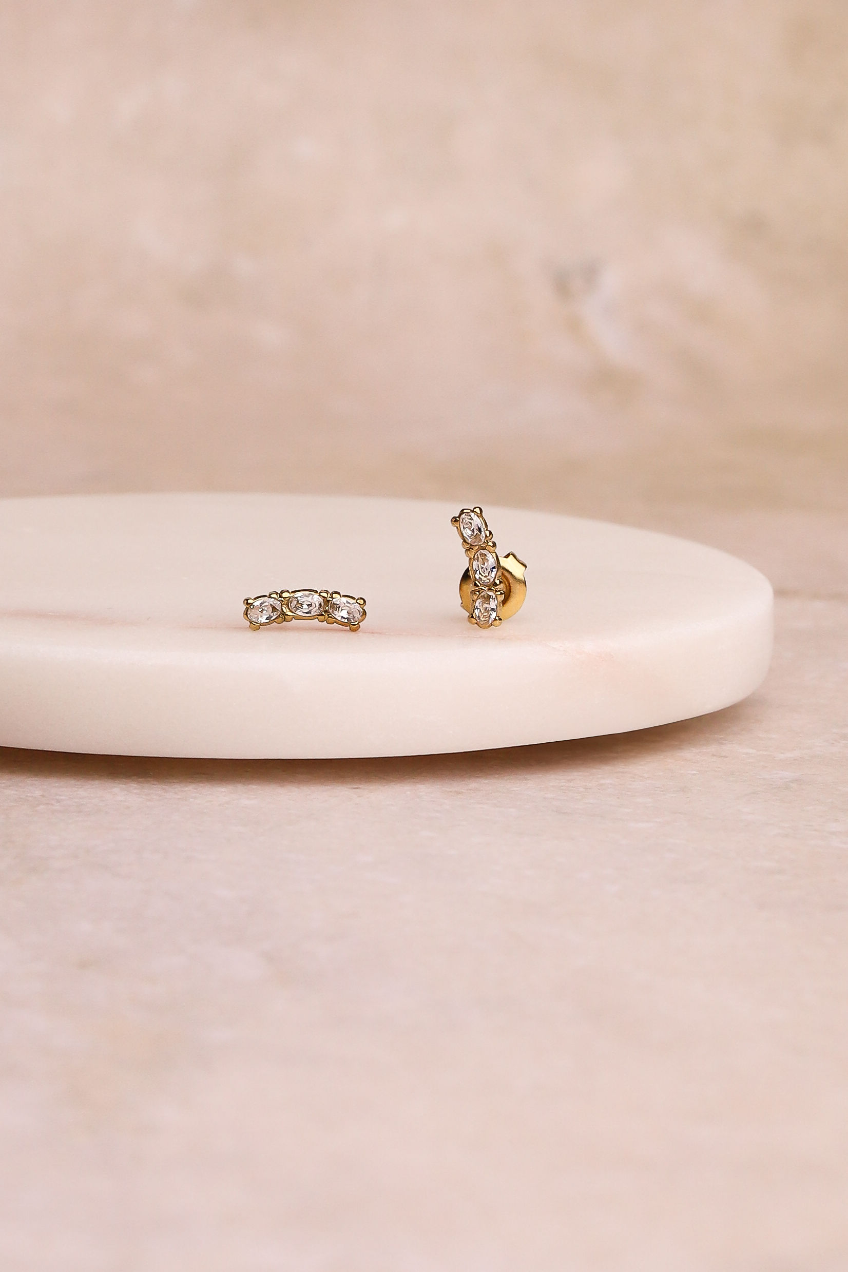 Boucles puces en acier inoxydable avec 3 petits cristaux.