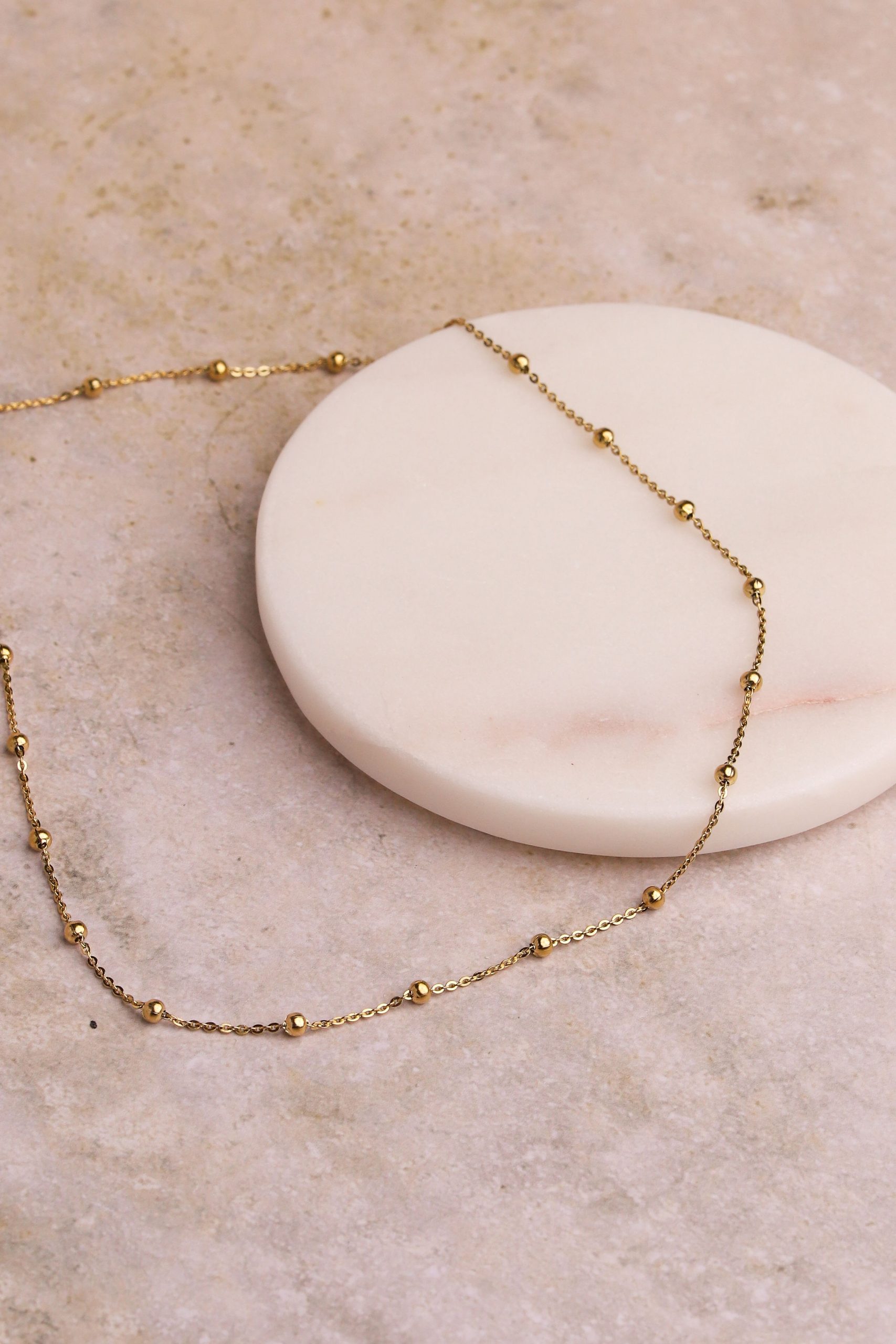 Collier en acier inoxydable avec pampilles étoiles et chaîne avec boules.