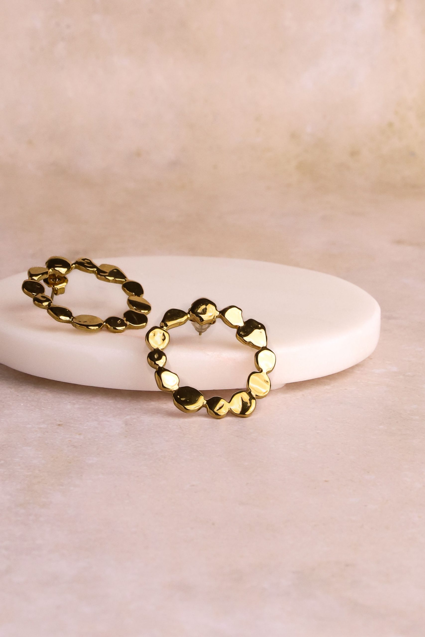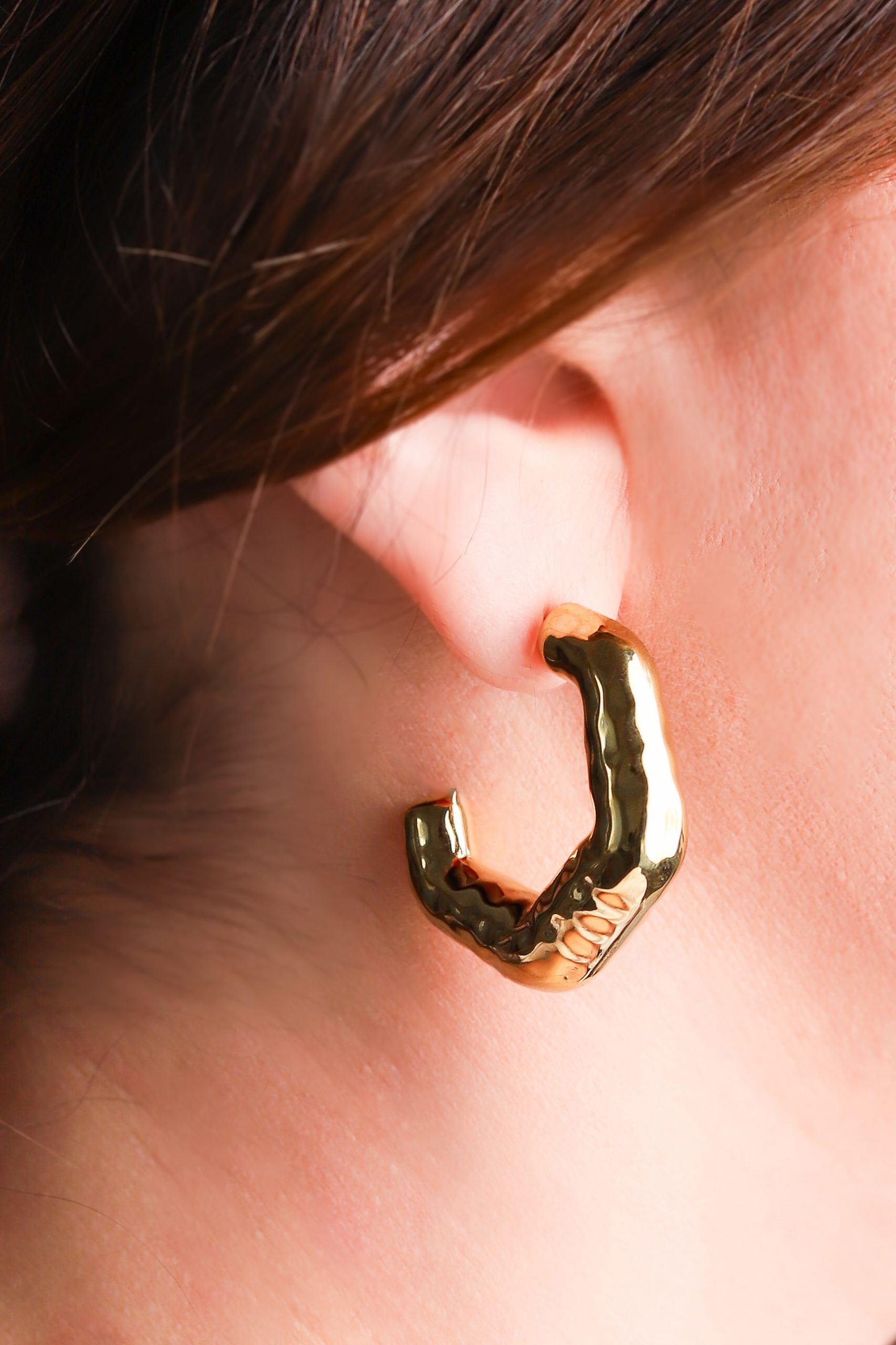 Boucles d’oreille type créoles en forme d’hexagonal martelé.